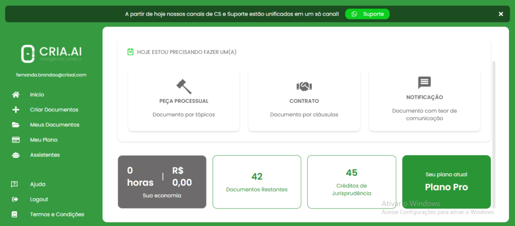 Confira abaixo como é fácil gerar uma minuta na Cria.AI: