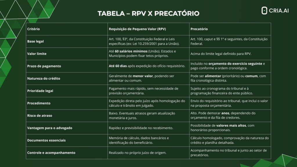 - RPV x Precatório: diferenças práticas para o advogado
