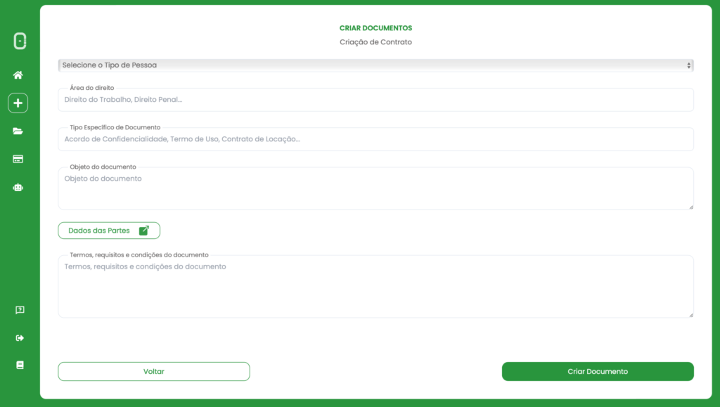 A Cria.AI fornece modelos de contratos e peças imobiliárias baseados em legislação atualizada e jurisprudência real.