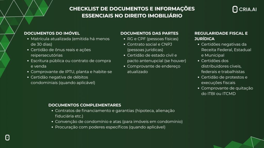 Antes de elaborar contratos, registrar imóveis ou propor ações, o advogado deve reunir e verificar toda a documentação. Esse cuidado previne nulidades, fraudes e litígios.