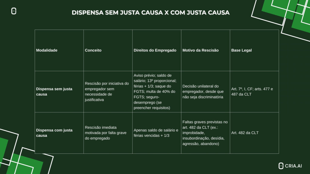 Para facilitar a visualização das diferenças práticas entre as duas modalidades de rescisão, segue uma tabela comparativa.