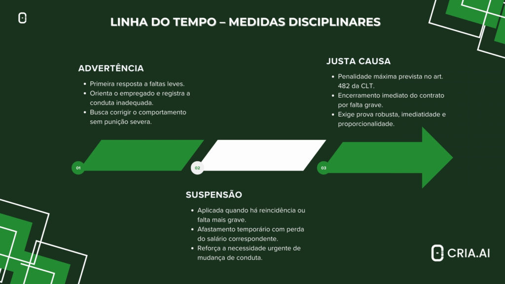 A fim de facilitar a compreensão da gradação das penalidades, a linha do tempo a seguir mostra a evolução das sanções até a justa causa.