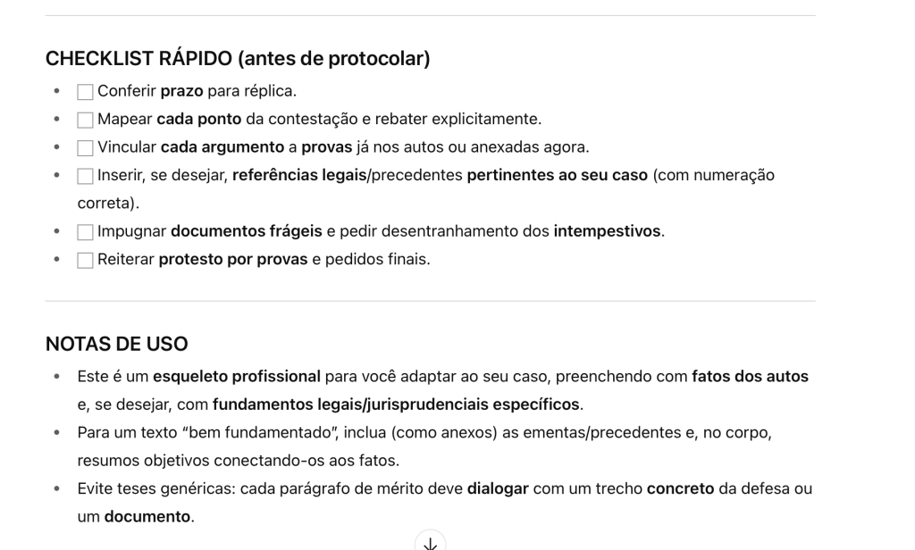 Assim, você garante que cada argumento do réu seja devidamente enfrentado e que o juiz perceba a coerência da sua tese.