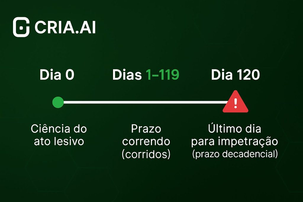 A contagem do prazo decadencial, é de 120 dias, prevista no artigo 23 da Lei 12.016/2009 e depende diretamente da data em que o interessado tomou ciência do ato lesivo.