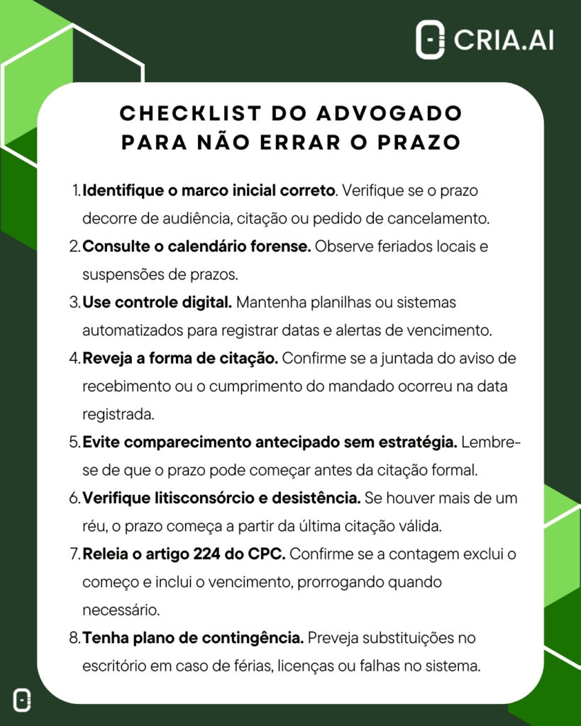 - Checklist do advogado para não errar o prazo